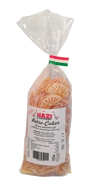 Összetevők: cukor, glükóz-szirup, kristálymentol, citrom-narancs aroma, színezék (kurkumin, béta-karotin)