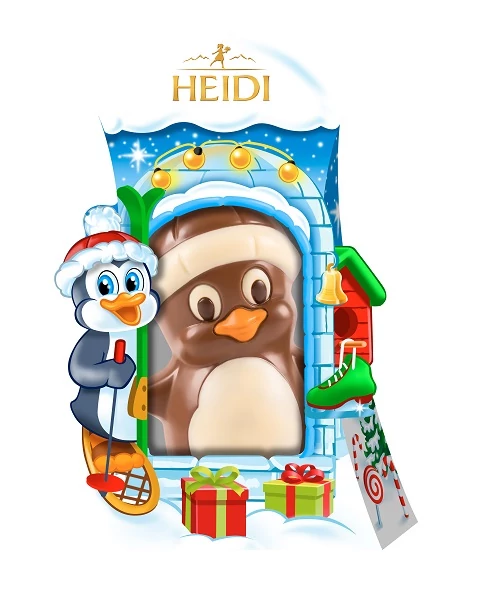 Játékos pingvin formájú tejcsokoládé figura, krémes, selymes textúrával. A Heidi Pinguin Tejcsokoládé kedves megjelenésével és gazdag ízével varázsol mosolyt az arcon.