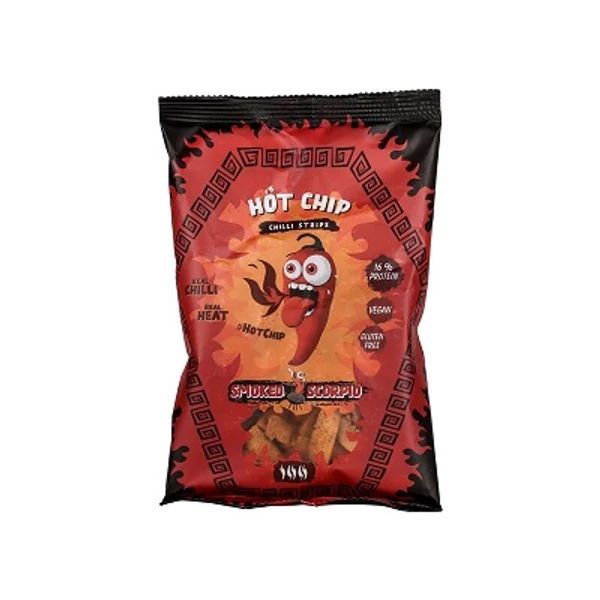 Faszenes füstös élmény a Moruga Scorpion paprika intenzív ízével! Ropogós borsóalapú snack csíkok, melyeket óvatosan füstölve és pikáns csípősséggel készítünk – tökéletes választás baráti találkozókhoz vagy ízlelőbimbók próbájához. Vegán, tiszta és természetes összetevőkből. Allergének: gluténmentes, tejmentes, vegán. Nem tartalmaz tartósítószert vagy mesterséges színezéket. Erős csípősség! Nem ajánlott gyermekeknek, várandósoknak vagy gyomor- és szívbetegeknek. Csomagolt kesztyű használata javasolt — ne érintse az arcát. Fogyasszon mellé tejterméket a csípősség csökkentése érdekében. Tartsa száraz, hűvös helyen (<20 °C), napfénytől távol.Hot Chip Strips Smoked Scorpio 80 g