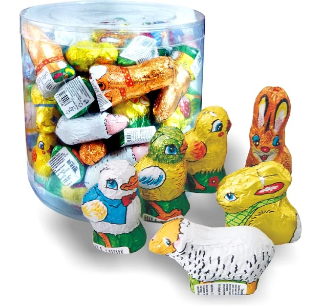 A Húsvéti Kollekció Hauswirth (12 g) ínycsiklandó válogatás színes, tavaszi mintájú formákkal – töltött pralinék és ehető dekorációk egyben, tökéletes húsvéti ajándék vagy nassolnivaló.