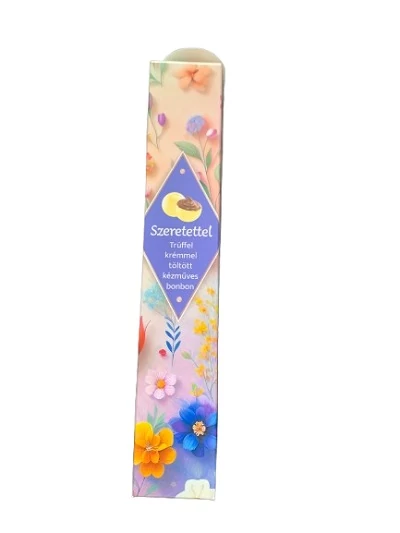 Kézműves bonbonválogatás gazdag, trüffelkrémes töltelékkel, gondosan összeállítva és „Szeretettel” feliratú csomagolásban. Tökéletes ajándék különleges alkalmakra vagy meghitt figyelmességként.