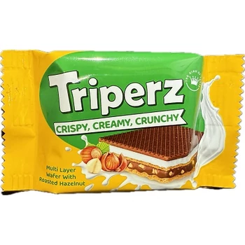 Triperz 25G mogyoró-,tej krémmel és mogyoró darabokkal töltött ostya