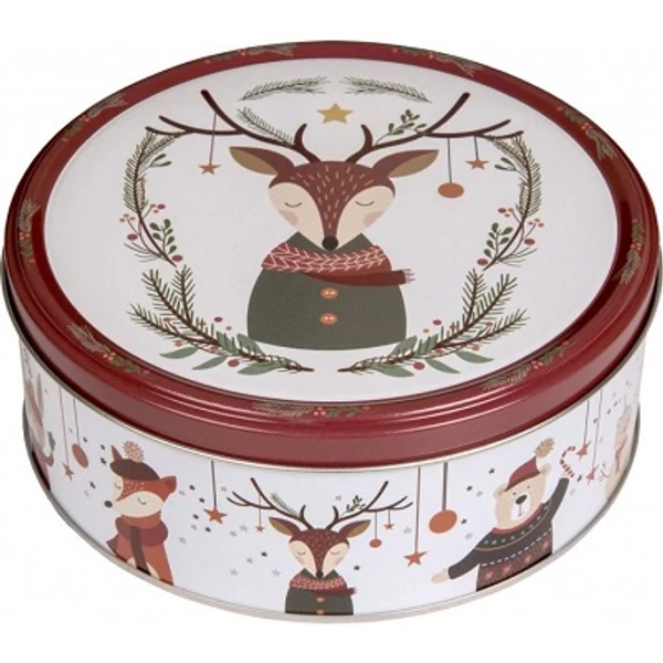 Tradicionális dán vajaskeksz válogatás fémdobozban, ünnepi mintával. Különböző formájú, finom, ropogós édesség, tökéletes karácsonyi meglepetés vagy teához kínálva.