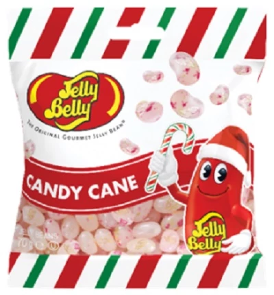 Frissítő borsmenta ízű, karácsonyi hangulatú Jelly Belly drazsék 70 grammos kiszerelésben. A csomagban 20 különböző íz található, mint például Blueberry, Bubble Gum, Buttered Popcorn, Chocolate Pudding, Coconut, Cotton Candy, Green Apple, Island Punch, Lemon, Lemon Lime, Licorice, Orange Sherbet, Peach, Pina Colada, Strawberry Daiquiri, Tangerine, Toasted Marshmallow, Tutti-Fruitti, Very Cherry és Watermelon. Az ízek véletlenszerűen keverednek a csomagban.