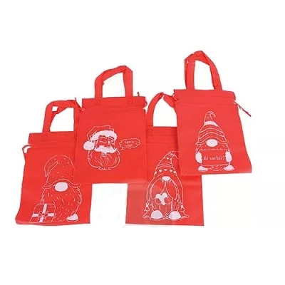 Ünnepi mintával díszített ajándéktáska, amely ideális kisebb ajándékok esztétikus csomagolására. Strapabíró kialakításának köszönhetően praktikus és dekoratív megoldás a különféle meglepetések átadásához.