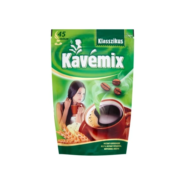 Instant kávékeverék 86,9% pótkávéval, koffeinnel dúsítva, visszazárható csomagolásban. A Kávémix gabona (árpa, rozs) és cikória alapú, valódi kávét tartalmazó kávés ital, mely a nap bármely szakában, akár többször is fogyasztható. E mérsékelten élénkítő, kellemesen könnyű kávés itallal derűsen indul a nap. A kávékeverék pótkávétartalmának köszönhetően hozzáadott cukor nélkül, természetesen édeskés ízű.