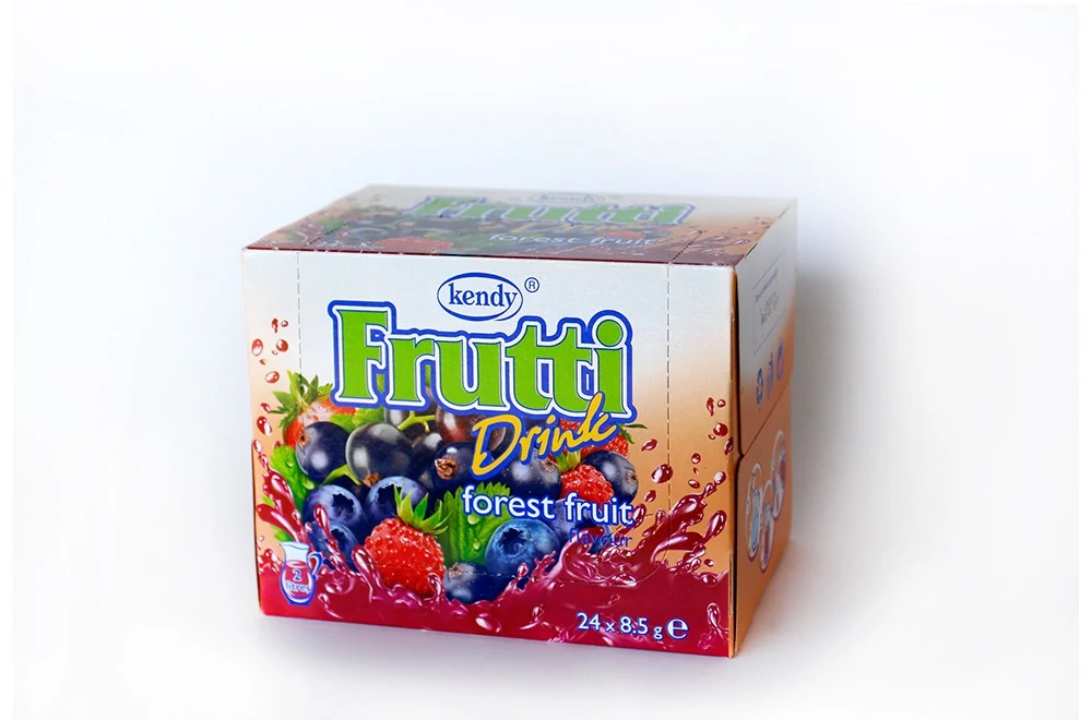 Maltodextrin, étkezési sav (citromsav), édesítőszerek (nátrium ciklamát, acaszulfám K, szacharin aszpartam-fenilalanin forrást tartalmaz), aromák, színezék (E 122*, E133).