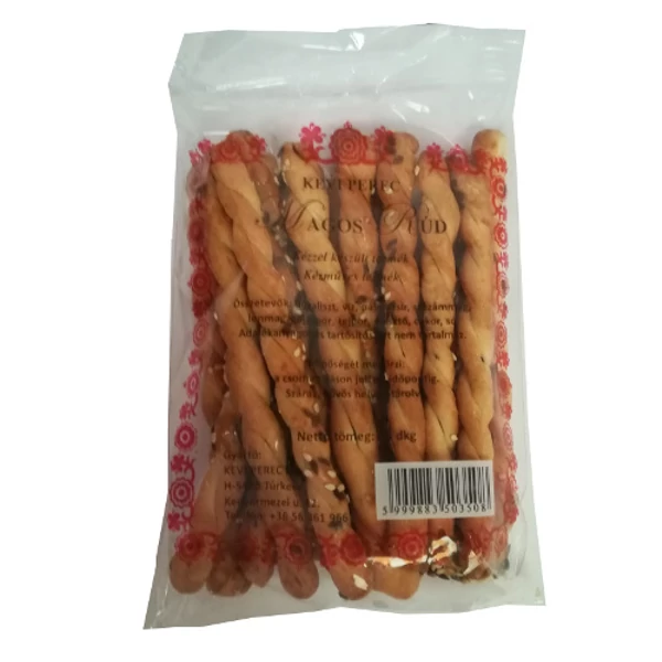 Sós rúd különféle magvakkal megszórva. Allergén információ: Tartalmaz glutént (búza) és szezámmagot. Nyomokban földimogyorót, tejet, tojást és dióféléket is tartalmazhat. Száraz, hűvös helyen tárolandó, napfénytől védve. Felbontás után légmentesen visszazárva tartandó.Kevi Perec Magos Rúd (150 g)