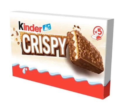 A Kinder Crispy egy finom tejcsokoládéval bevont ropogós ostyaszelet, amely krémes töltelékkel rendelkezik. Ideális nassolnivaló gyerekeknek és édesszájú felnőtteknek egyaránt.