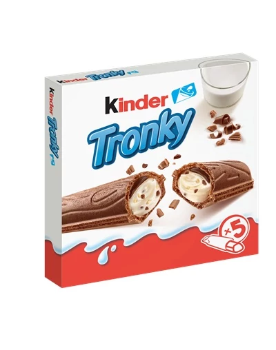 A Kinder Tronky egy finom tejcsokoládéval bevont sütemény szelet, amely krémes tejtöltelékkel rendelkezik. Ideális nassolnivaló édesség bármilyen alkalomra.