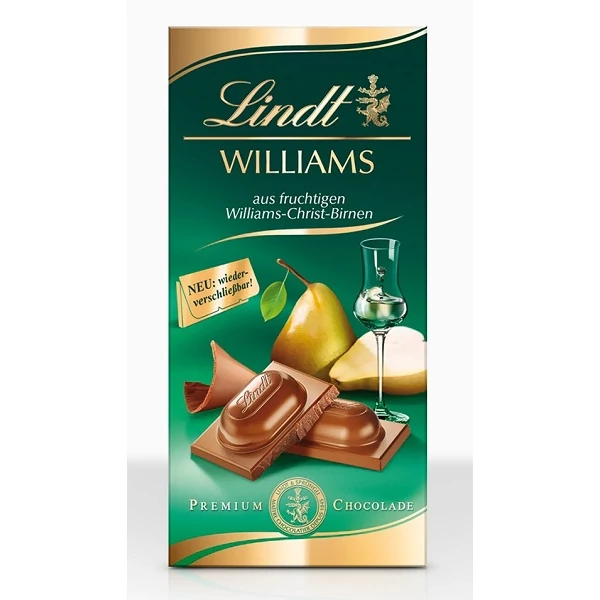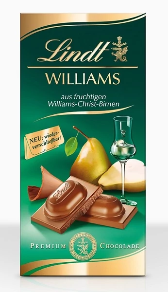 Összetevők: Cukor, kakaóvaj, teljes TEJpor, Williams körtepálinka (8%), kakaótömeg, TEJCukor, invertcukor, sovány TEJPOR, sűrítő (arab aromás), emulgeálószer (SZÓL-lecitin), ÁPRAMALÁTA-kivonat, aroma. Tartalmazhat mogyorót, mandulát és más diót.