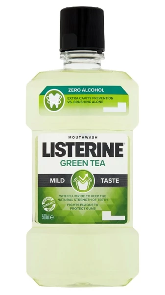 A Listerine új, természetes zöld tea kivonatot tartalmazó szájvize klinikailag bizonyítottan segít megelőzni a fogszuvasodást, az ínyproblémákat míg a benne levő fluorid erősíti a fogakat. Alkoholt nem tartalmaz.