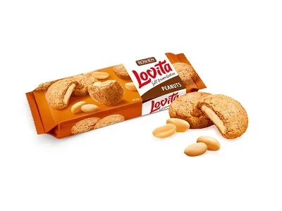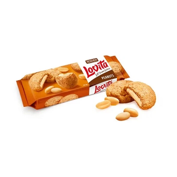 A Lovita Soft Cream Teasütemény – földimogyorókrémes (127 g) puha, omlós teasütemény, közepén gazdag földimogyorókrémmel.