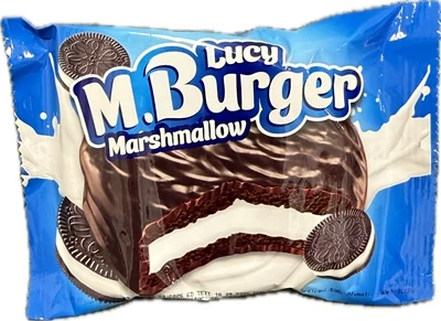 Étbevonóba mártott, kakaós kekszből és habcukor (marshmallow) töltelékből álló édesség hamburger formában. A ropogós keksz és a puha, édes töltelék különleges textúrájú kombinációt alkot. Gyerekek és édesszájú felnőttek kedvence – ideális bulikra, ajándékba vagy egy kis kényeztetéshez.