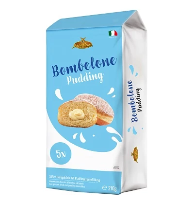 A Maister Moulin Bombolone (210 g) – custard cream töltelékkel puha, cukros fánk, belül krémes vaníliás custard krémmel töltve – ideális reggelire, uzsonnára vagy bármilyen édes pillanatra.