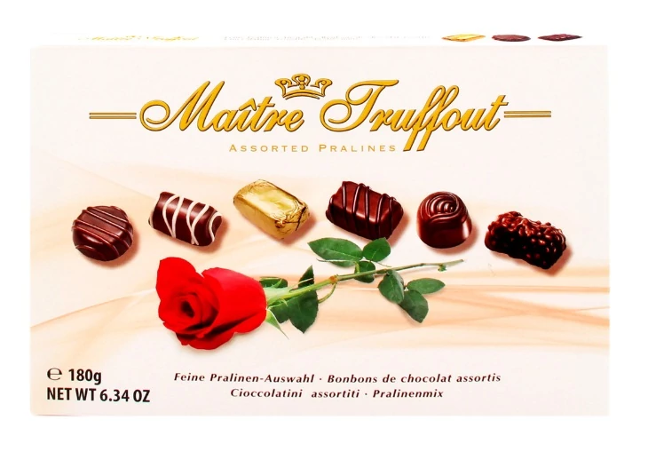 A Maitre Truffout praliné válogatás gondosan összeállított, elegáns csokoládékínálat, változatos töltelékekkel: mogyorókrémes, nugátos, kakaós és tejes pralinékat tartalmaz. A fehér díszdoboz ideális ajándék vagy ünnepi kínáló is lehet.