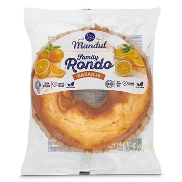 Márka: Mandul Családi kiszerelésű narancsos süteményfalatok, puha piskóta narancsos ízesítéssel. Allergének: GLUTÉN (búza), TOJÁS. Nyomokban lehet TEJ, SZÓJA.Mandul Rondo – 400 g (narancsos)