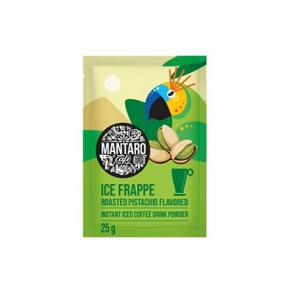 A Mantaro Pörkölt Pisztácia ízű Frappé (25 g) gyorsan elkészíthető, krémes textúrájú instant italkeverék, intenzív pisztácia-aromával és enyhén pörkölt ízjegyekkel.