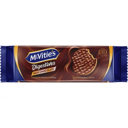 A McVitie's Digestive Original Milk teljeskiőrlésű keksz 150 g-os kiszerelésben. Tejcsokoládéval bevont, ropogós keksz, ideális nassolnivalóként vagy teához, kávéhoz.