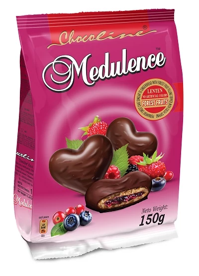 Búzaliszt, cukor, erdei gyümölcsös töltelék (erdei gyümölcsök 15%, cukor, zselésítő anyag: pektin), növényi olaj, tojás, vaj, sűrítőanyag (glicerin), só, sütőpor, aroma.
