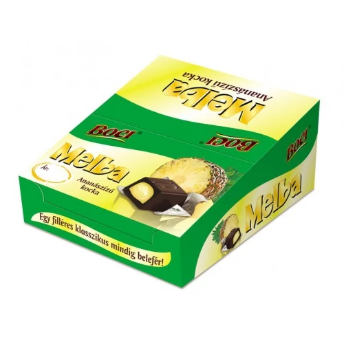 A Melba Kocka egy klasszikus, prémium minőségű csokoládés desszert. A tejcsokoládéval bevont, lágy állagú fondant kocka édes, vaníliás ízvilágával tökéletes választás nassoláshoz vagy ajándékba. Praktikus, egyadagos (12,7 g) kiszerelésben is kapható.