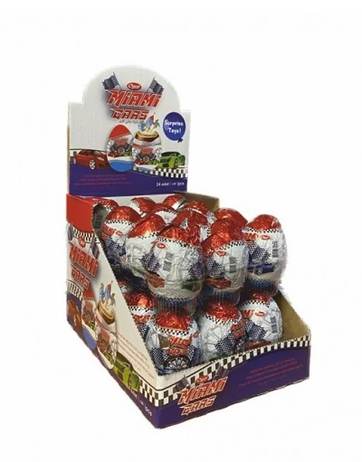 Kiszerelés: 15 g csomagolt csokoládétojás meglepetéssel Allergének: TEJ, SZÓJA. Nyomokban előfordulhatnak: DIÓFÉLÉK, FÖLDIMOGYORÓ.Miami Cars Meglepetés Tojás – 15 g