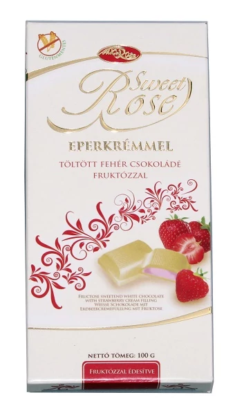 Összetevők: fruktóz, kakaóvaj, zsíros tejpor, hidrogénezett növényi zsír, sovány tejpor, eperpor, emulgeálószer: szójalecitin, aromák, étkezési sav:citromsav, természetes színezékek:kárminok.