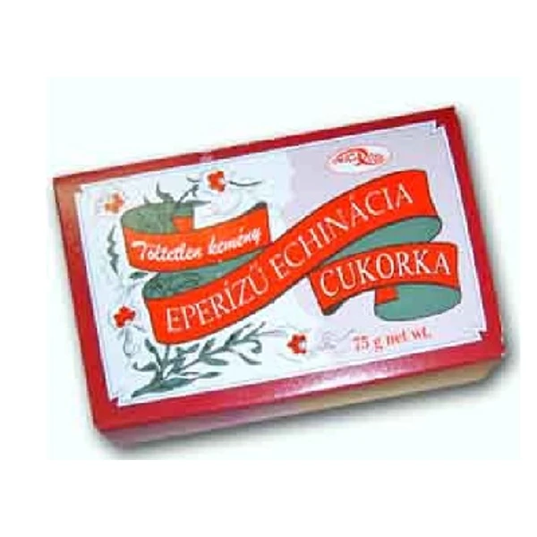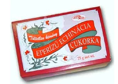 Töltetlen keménycukorka eper ízesítéssel és bíborszínű kasvirág (echinacea) kivonattal – a gyógynövényes nasik egészségtudatos alternatívája.
