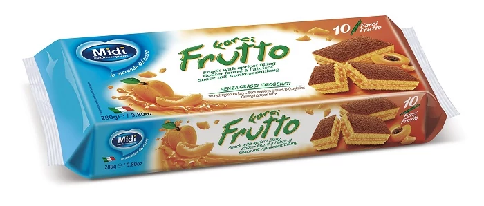 | Specifikáció alapján teljes megnevezés | MIDI Töltött piskóta szelet barackos 10*28g |