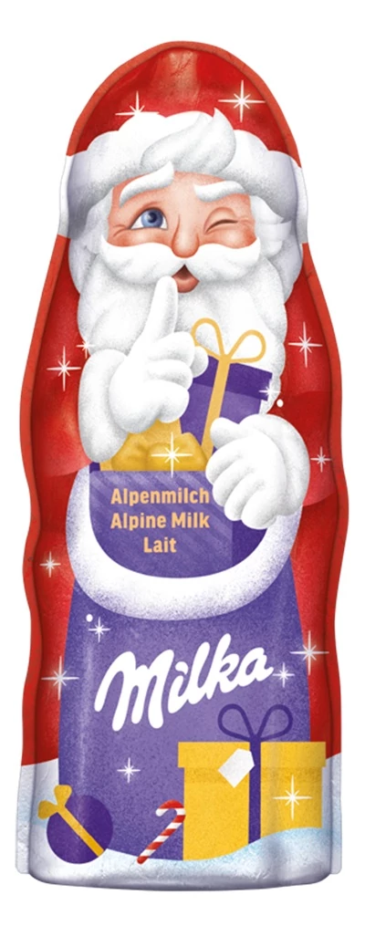 A lágy alpesi tejcsokoládéból készült Milka Mikulás.