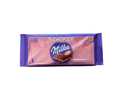 Alpesi tejcsokoládé eperrel ízesített joghurtos krém (50%) töltelékkel.