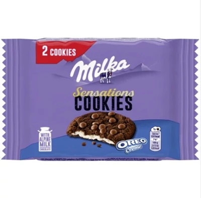 A Milka Sensations Cookies Oreo egy különleges keksz, amely ötvözi a ropogós süteményt, az Oreo ihlette krémes tölteléket és a Milka alpesi tejcsokoládé lágy ízét. A kívül enyhén roppanós, belül krémes állag igazán élvezetessé teszi minden falatot. Ideális választás egy kis kényeztetéshez a nap bármely szakában.