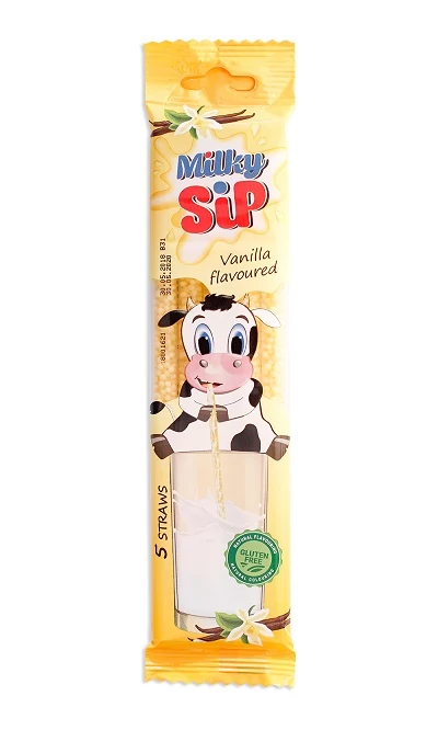 A Milky Sip Vanilla szívószál finom vanília ízzel gazdagítja az italokat, miközben praktikus és ízletes nassolási lehetőséget kínál bárhol és bármikor.