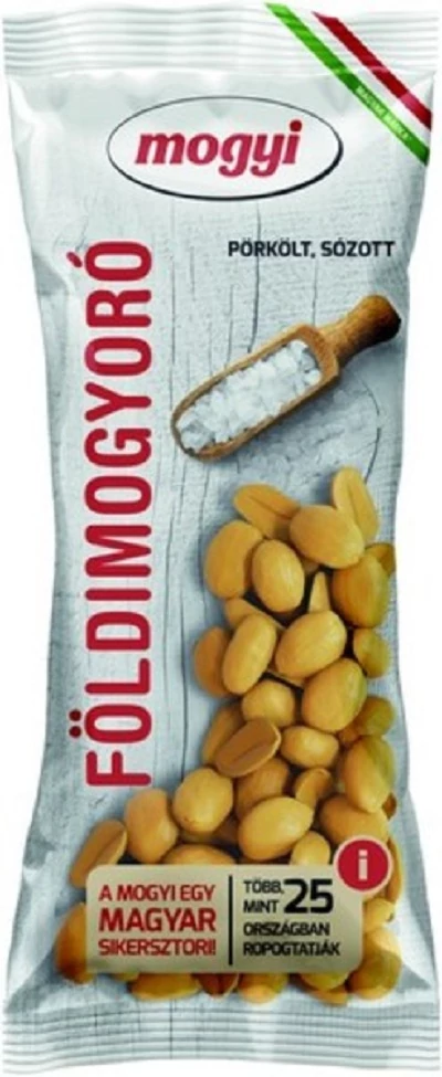 Pörkölt, enyhén sós földimogyoró. Tartalmaz földimogyorót. Előállítás során lehetnek jelen diófélék és glutén nyomokban.Mogyi Sós Földimogyoró 70 g