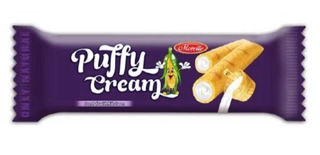 Kiszerelés: 18 g A Morello Puffy Cream tejes ízű, könnyű, habos krémmel töltött édesség, amely gluténmentes recept alapján készült. Tökéletes választás azok számára, akik gluténmentes terméket keresnek, de nem akarnak lemondani a krémes, finom ízről. Allergének: tej és szója nyomok előfordulhatnak. Gluténmentes. Egy adag (18 g) kb. 324 kJ / 77 kcal energiát tartalmaz.Morello 18G Puffy Cream – Tejes, Gluténmentes