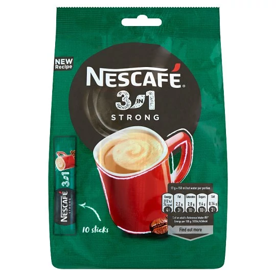 Cukor, Glükózszirup, Teljes mértékben hidrogénezett pálmamagolaj, Azonnal oldódó kávé 12,2%, Stabilizátorok (E340, E331, E452, E451), Tejfehérje, Étkezési só, Emulgeálószerek (E471, E472e)