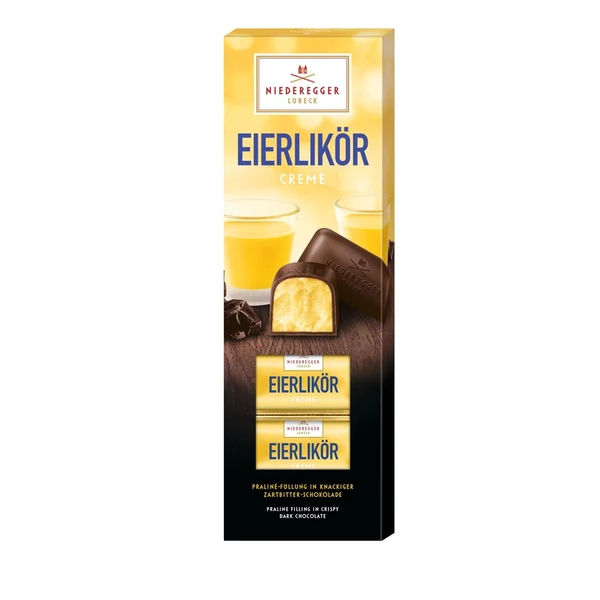 Praliné klasszikusok gazdag tojáslikőr töltelékkel (49 %) sötét csokoládé burkolatban – lágy, krémes élmény.