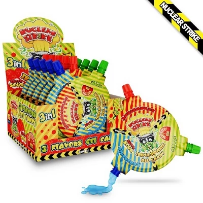 A Nuclear Strike 45 g Triple Squeeze savanyú gél tubusban – intenzív, gyümölcsös savanyúsággal, könnyen nyomható adagolással.