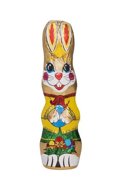 Húsvéti tejcsokoládé nyuszi színes fóliába csomagolva, Nicole márkától. Aranyos formája és édes tejcsokoládé íze miatt kiváló választás locsolóknak, ünnepi ajándékként vagy díszítéshez. Klasszikus húsvéti finomság gyermekek és felnőttek számára egyaránt.