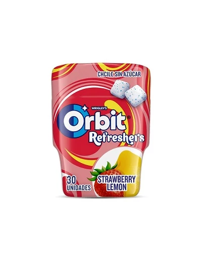 Az Orbit Refreshers Strawberry Lemon ízű rágógumi frissítő eper-citrom aromával.
