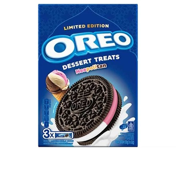 A Oreo Neapolitan 393 g válogatás három klasszikus ízt kínál egy csomagban: vaníliás, csokoládés és eper ízű krémmel töltött ostyák. Praktikus, családi kiszerelés, ami ideális közös nassoláshoz vagy vendégváráshoz.