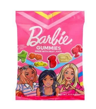 Az Original Gourmet Barbie gumicukor 100 g vidám, Barbie témájú formájú gumicukrok különböző gyümölcsös ízekben és élénk színekben – tökéletes nassolnivaló gyerekeknek és rajongóknak egyaránt.
