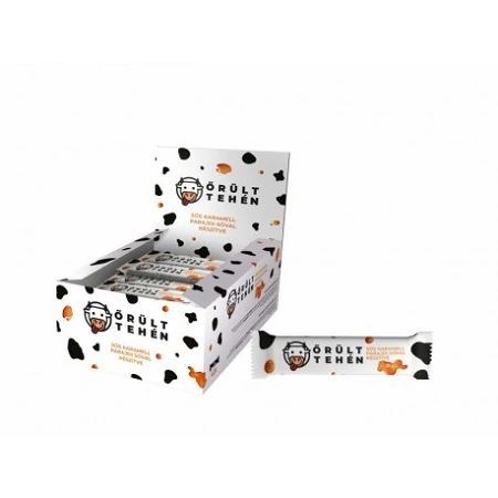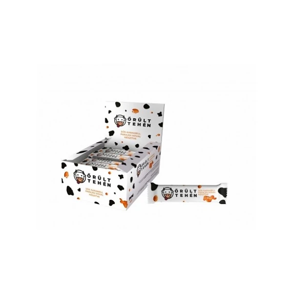 Kiszerelés: 80 g (egységes karamellszelet) Élvezd a sóval ízesített, lágyan olvadó ós karamellszelet gazdag vaj- és tejporalappal. Az Őrült tehén különlegessége az édes-sós ízkombináció, ami egyszerre krémes és fantasztikusan izgalmas. Egy 80 g-os szelet kb. 1 528 kJ / 365 kcal energiát tartalmaz.Őrült tehén – Sós karamell 80 g