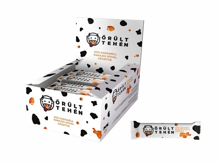 Kiszerelés: 30 g Az Őrült tehén sós karamell szelet egy finom, lágy textúrájú karamellás édesség, amelyben a parajdi só különleges íze harmonikusan keveredik az édes karamellel. Őrült tehén – Sós karamell szelet 30 g