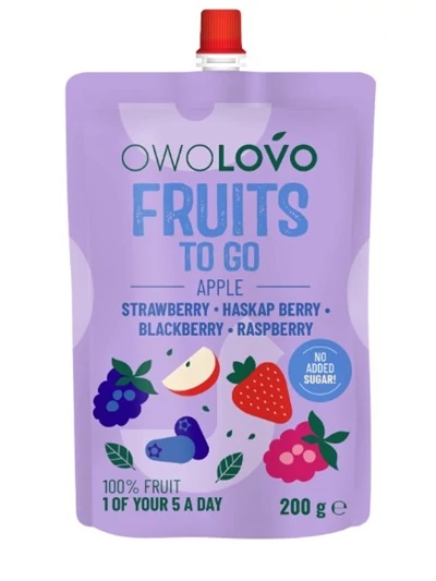 Az Owolovo 100%-os gyümölcspüré gondosan válogatott szeder, eper, málna és áfonya felhasználásával készül. Hozzáadott cukrot nem tartalmaz, kizárólag a gyümölcsök természetes cukortartalmát tartalmazza. Praktikus, visszazárható csomagolásának köszönhetően kényelmes megoldás otthonra vagy útközben is.