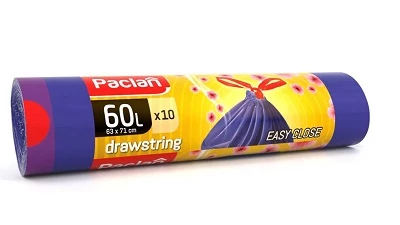 A Paclan 60 literes szemeteszsákok praktikus húzófülekkel vannak ellátva, amelyek megkönnyítik a zsák lezárását és kényelmes szállítását.