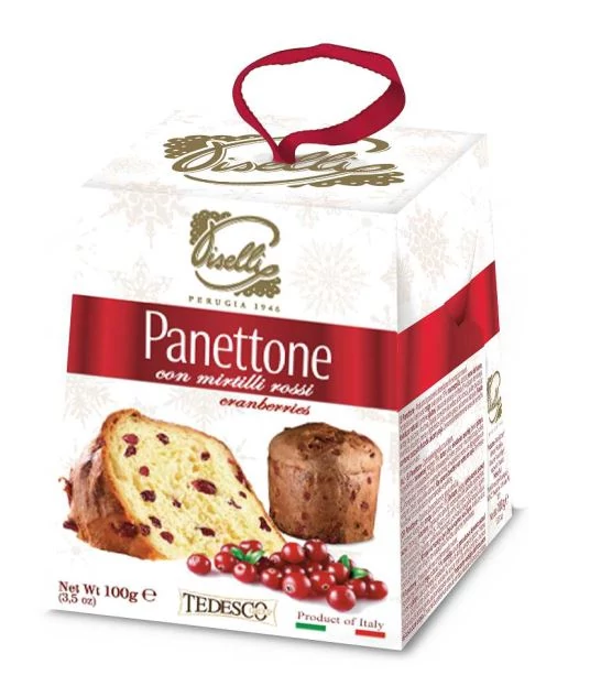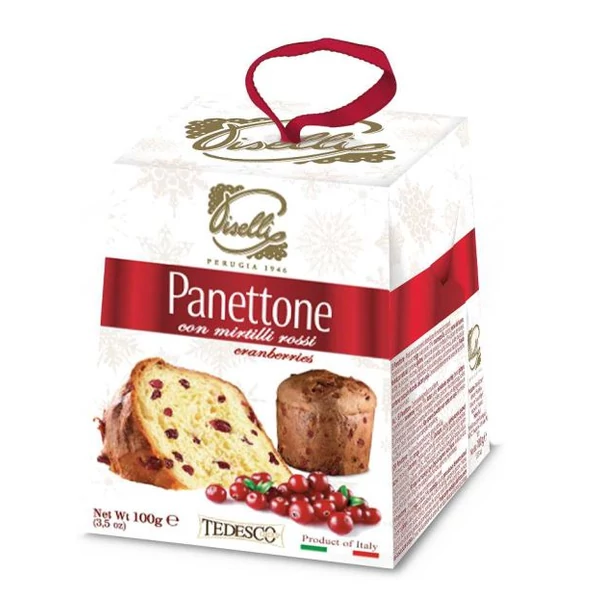 Puha, fonott olasz kuglóf friss vörös áfonyával és kandírozott narancshéjjal. A 100 g-os kiszerelés tökéletes ünnepi élvezet egyéni adagban.