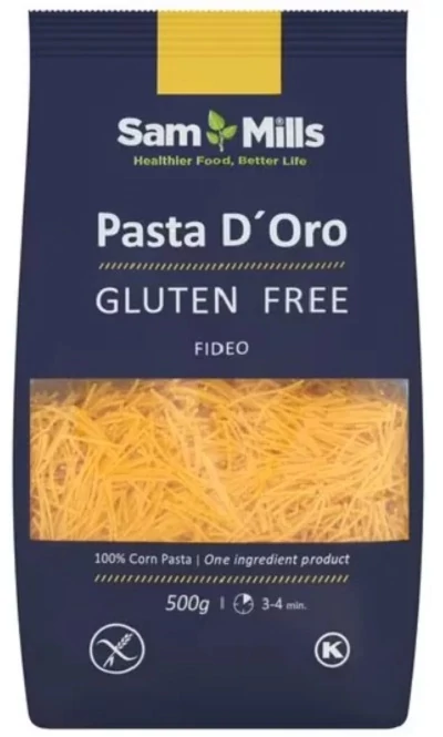 Élvezze a Sam Mills Pasta D'Oro 500 g-os cérnácskáját, amely 100%-ban kukoricalisztből készült, így gluténmentes és ideális alternatívája a hagyományos tésztáknak. A tészta élénk sárga színű, finom ízű, főzés után „al dente”, azaz feszes és harapható állagú. Nem ragad össze, és laktató választás minden étkezéshez. Mesterséges adalékanyagokat, tartósítószert, pálmaolajat, laktózt, tojást vagy szóját nem tartalmaz, így vegánok és vegetáriánusok számára is alkalmas.