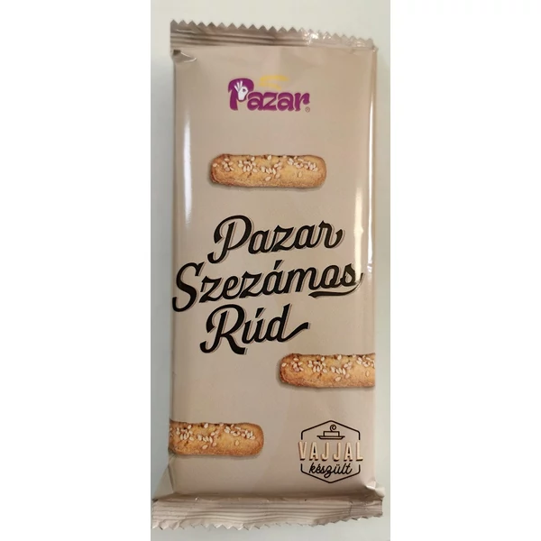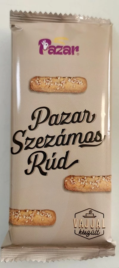 Hosszan sült, ropogós sós rúd egész szezámmaggal megszórva – karakteres íz és ropogós textúra, tökéletes snack vagy előétel mellé.