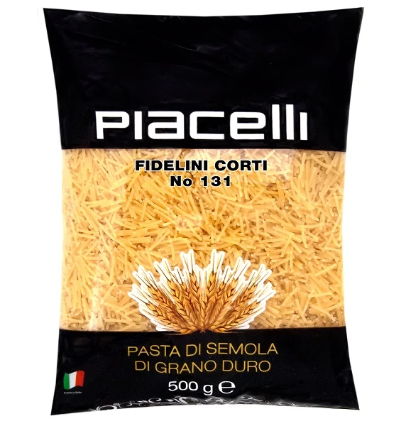 A Piacelli Fidelini Corti No. 131 egy vékony, rövidre vágott száraztészta, amely ideális levesbetétként, de könnyű tésztás ételekhez is kiválóan használható. Hagyományos olasz recept alapján, 100% durumbúzadarából készül, tojás hozzáadása nélkül. Főzés közben megtartja formáját és kellemesen ruganyos állagú marad.
